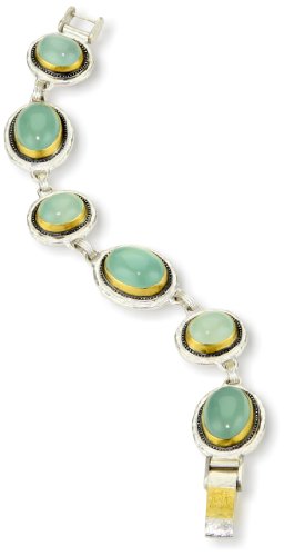 All around white and dark sterling silver chalcedony bracelet with a hand-hammered high karat gold border, and granulated rim..