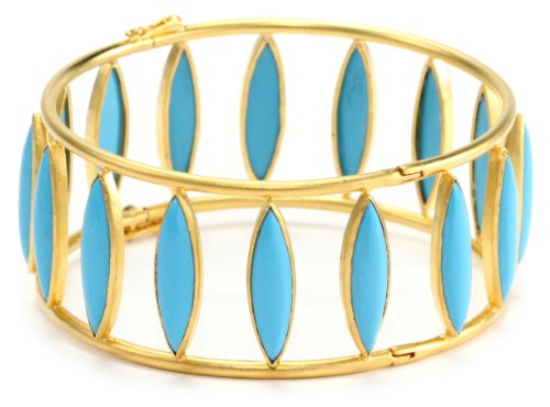 Lauren Harper Collection Archipeligo Blue 18k Gold Turquoise Hinged Bangle Bracelet Feature